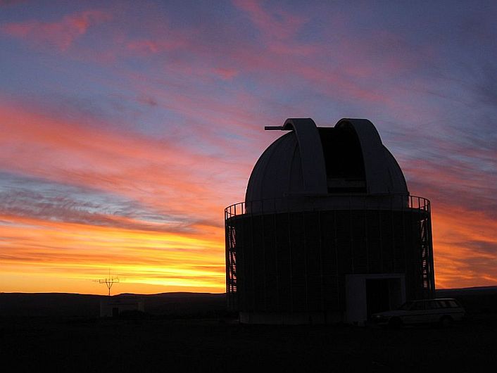 Die koepel van die 40-duim teleskoop in Sutherland maak gereed vir observasies op 6 September 2005 in die hoop dat dit sal opklaar.