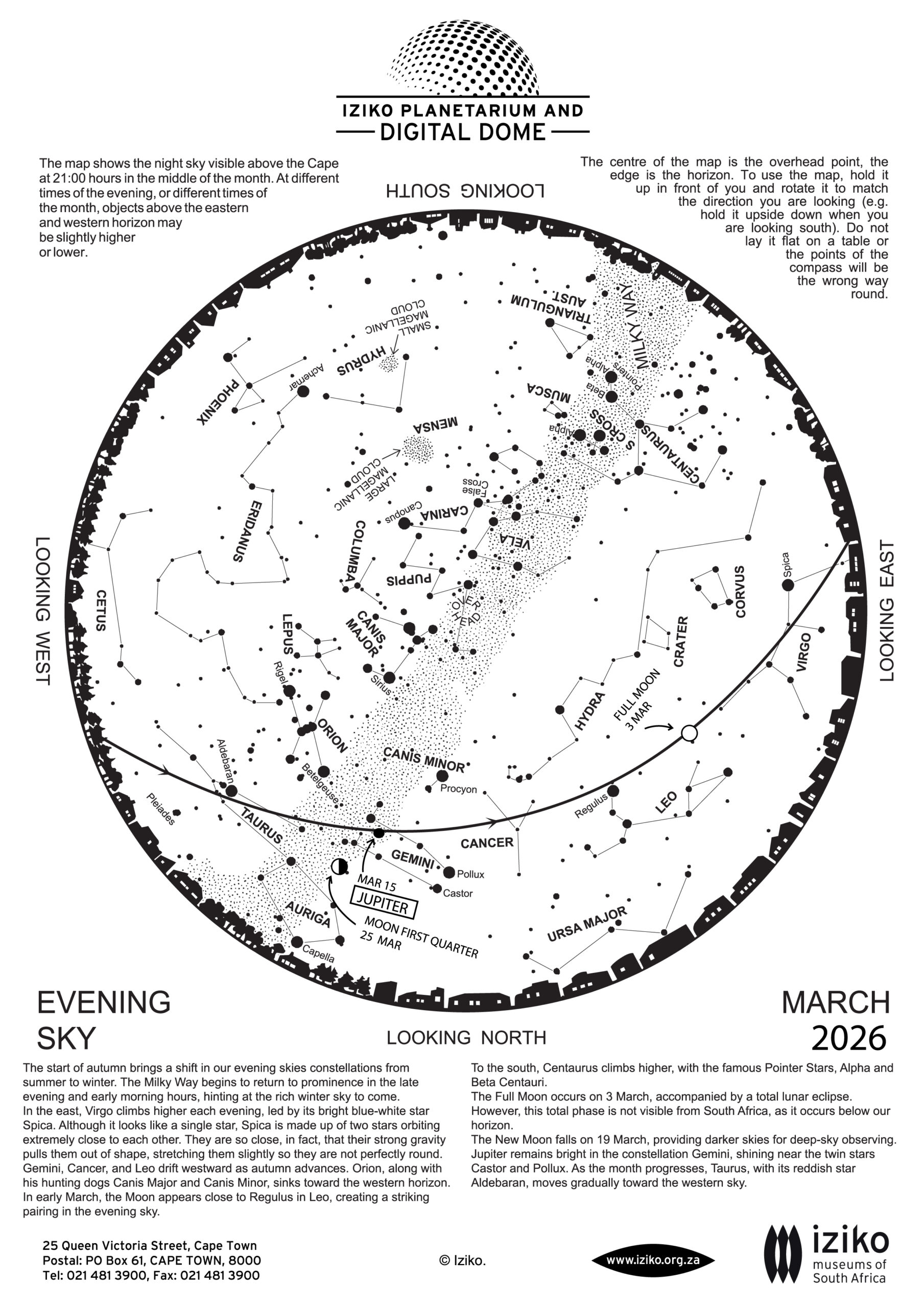 The Whats Up contains information about the Moon, the planets, stars in the evening sky and meteor showers for the month, as well as some fun facts.